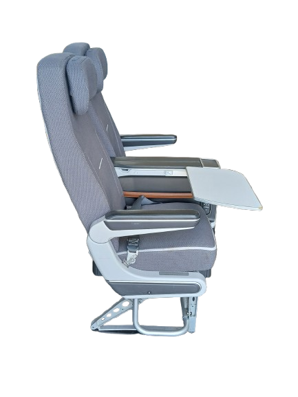 Caractéristiques techniques : Fabriqué avec un cadre en aluminium léger avec revêtement en tissu ou en cuir. Comprend, des accoudoirs et des appuis-tête réglables. Certains modèles disposent d’écrans de divertissement en vol et de ports USB.